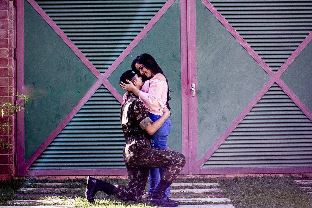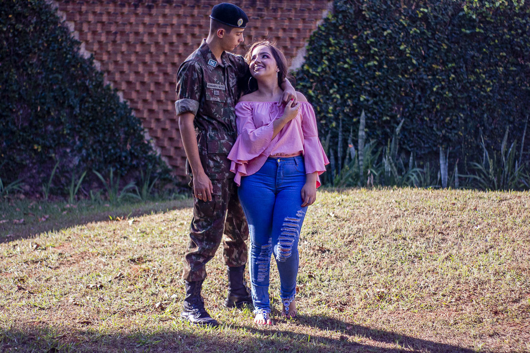 Hoje foi o ensaio casal da Geovana e Leonardo, realizado nos arredores do bairro Jardim Karaíba em Uberlândia - MG. O Leonardo faz parte do exército e quis usar seu uniforme no ensaio, o que foi muito bacana, por deixar a sessão ainda própria do casal, com a personalidade deles. O resultado ficou muito legal e o melhor, ter feito no Dia dos Namorados, deixou tudo ainda mais especial.